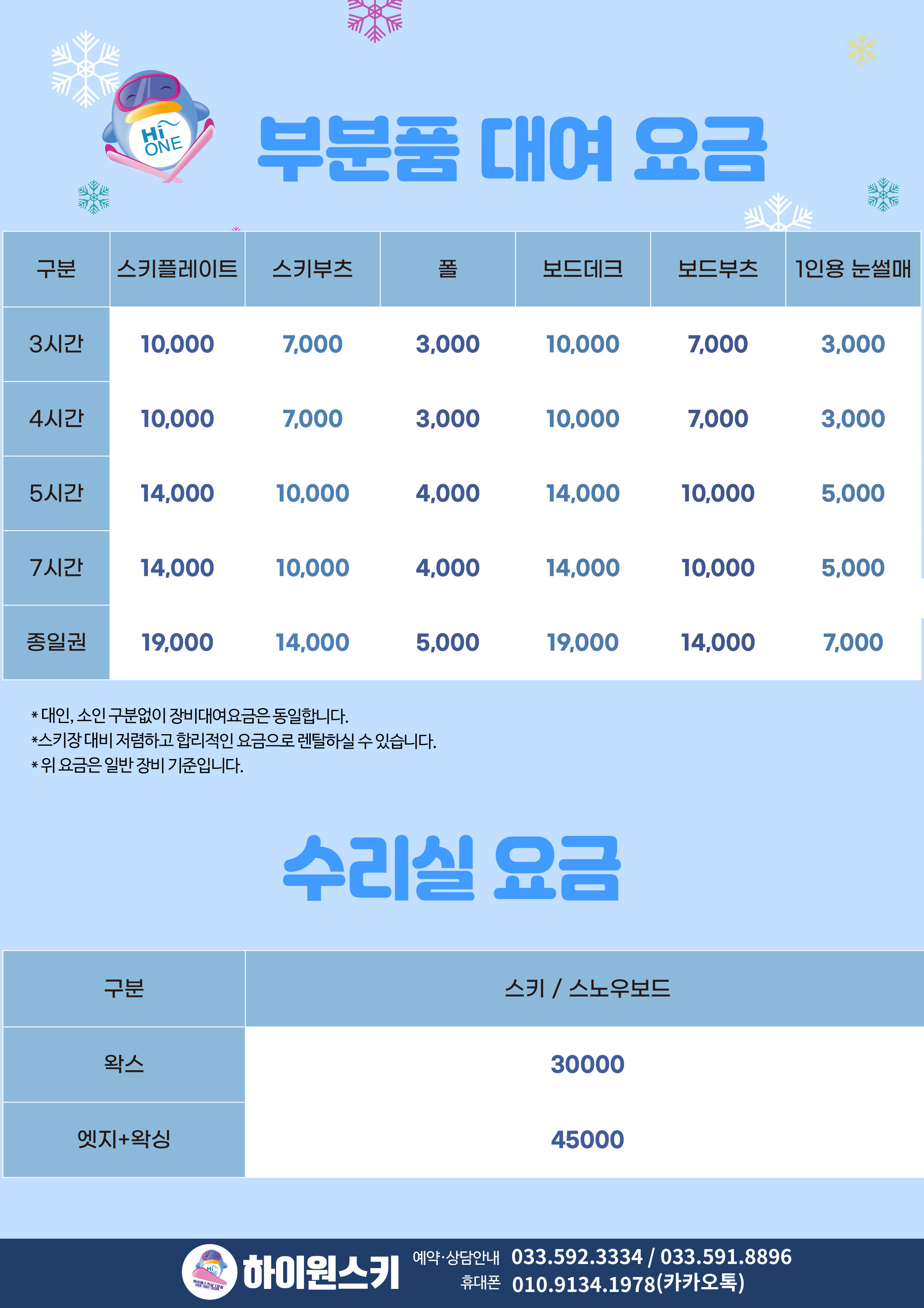 - [25-26] 부분품 대여, 수리실 요금 안내해드립니다.