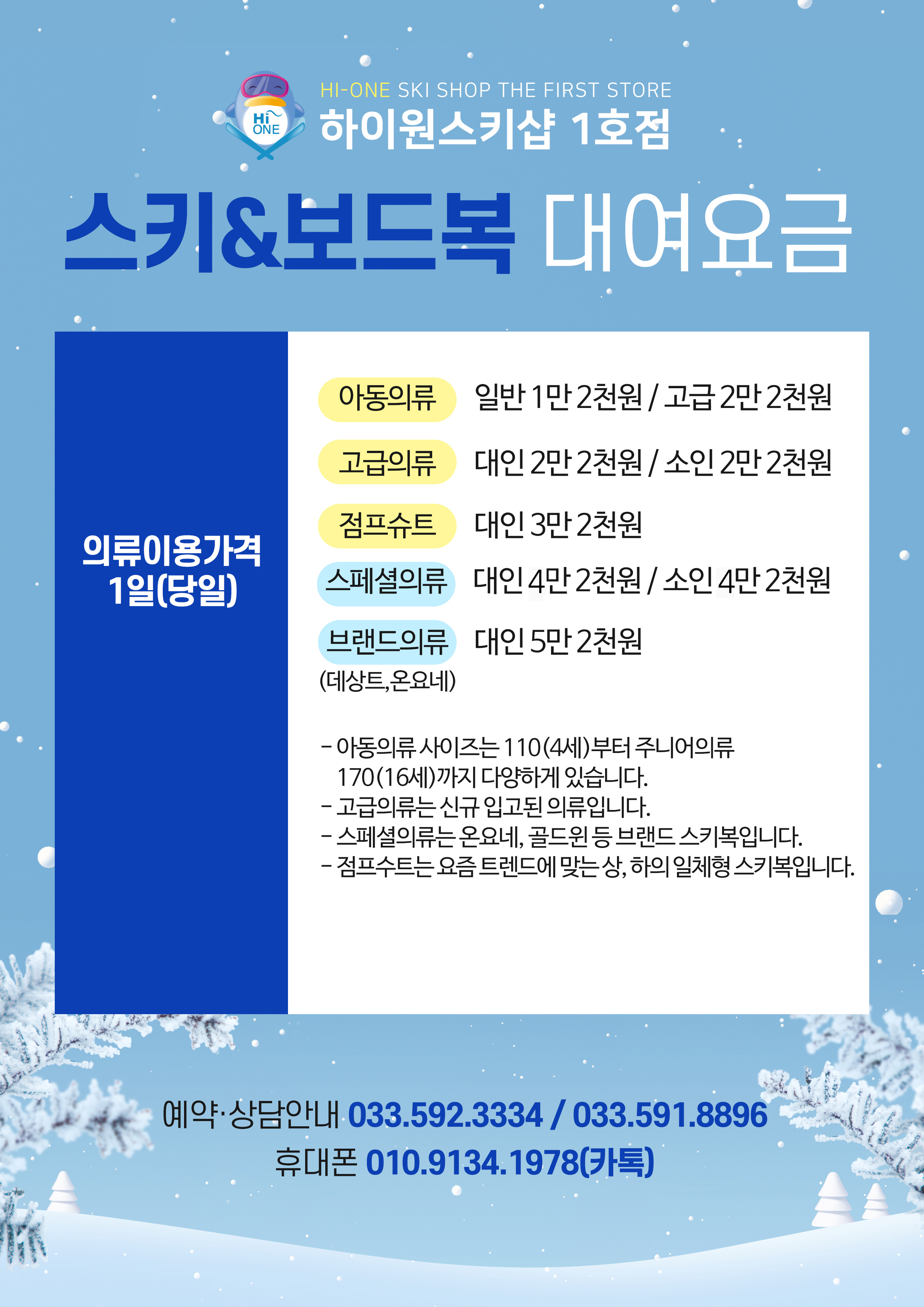 - [25-26] 스키복& 보드복 의류렌탈 요금 안내해드립니다