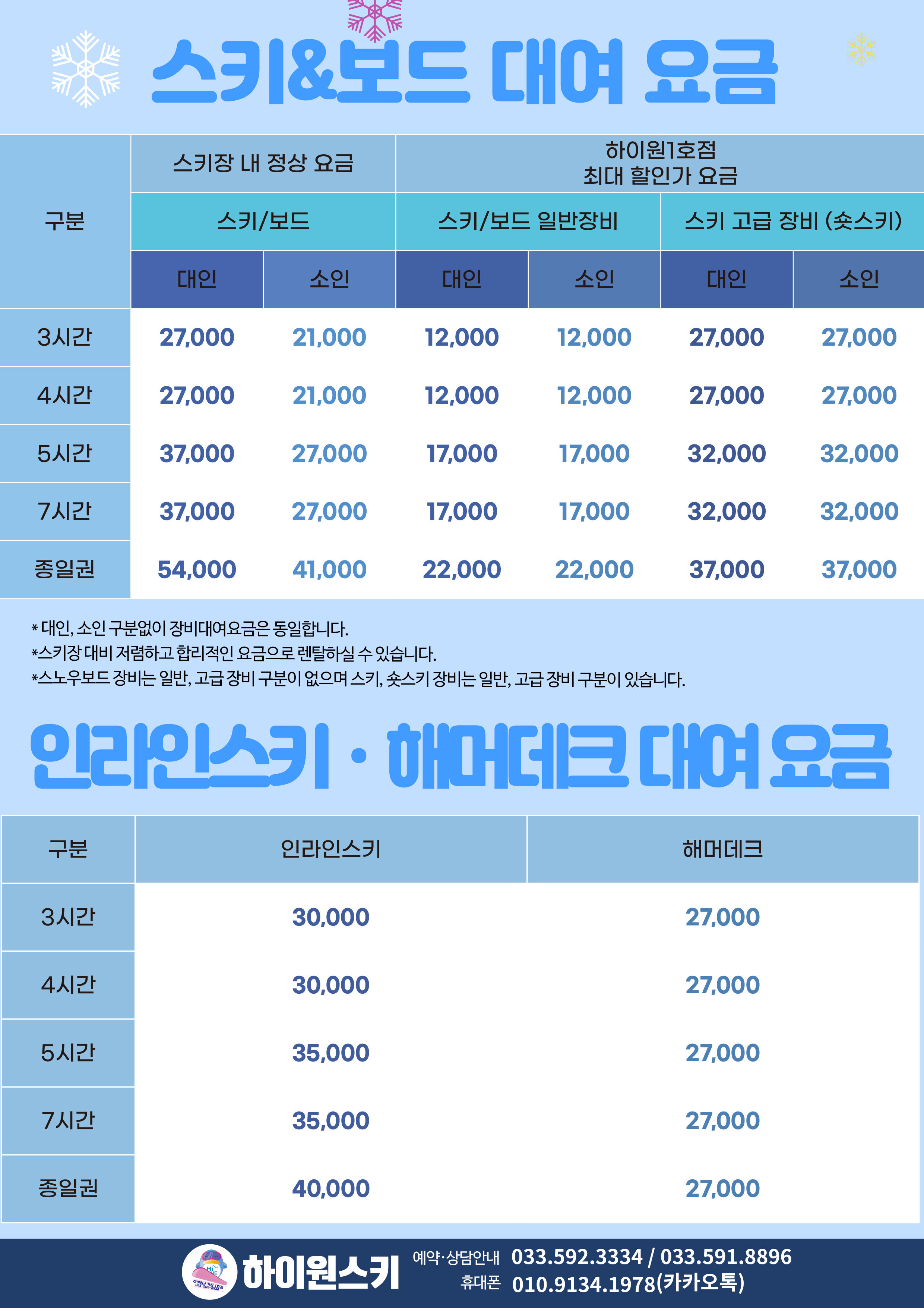 - [25-26] 스키& 스노우보드 장비렌탈 요금 안내해드립니다.